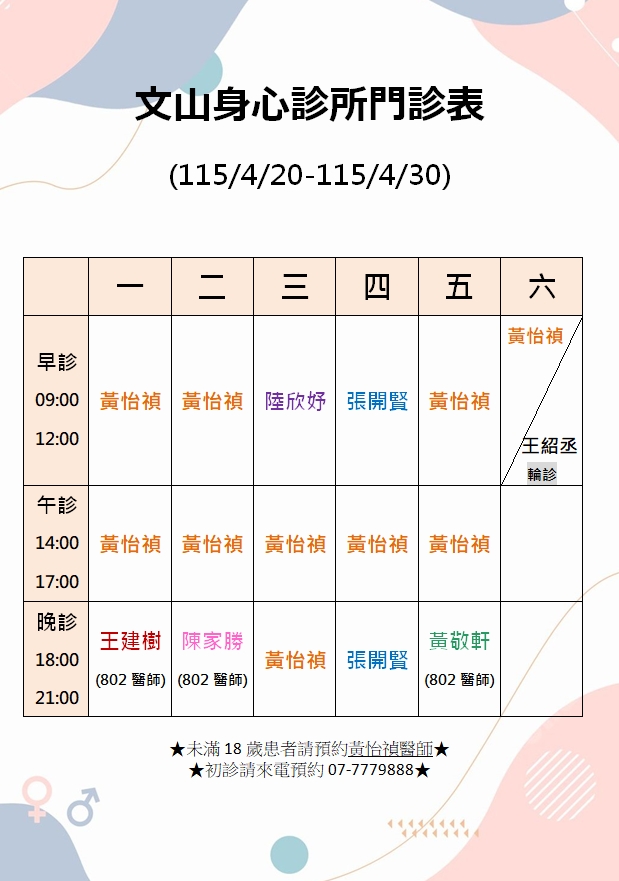 初診請來電預約,額滿後現場無法受理,謝謝您的配合!