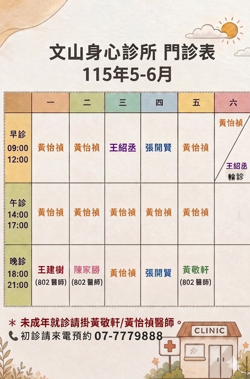 初診請來電預約,額滿後現場無法受理,謝謝您的配合!